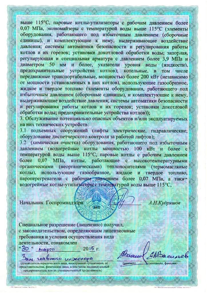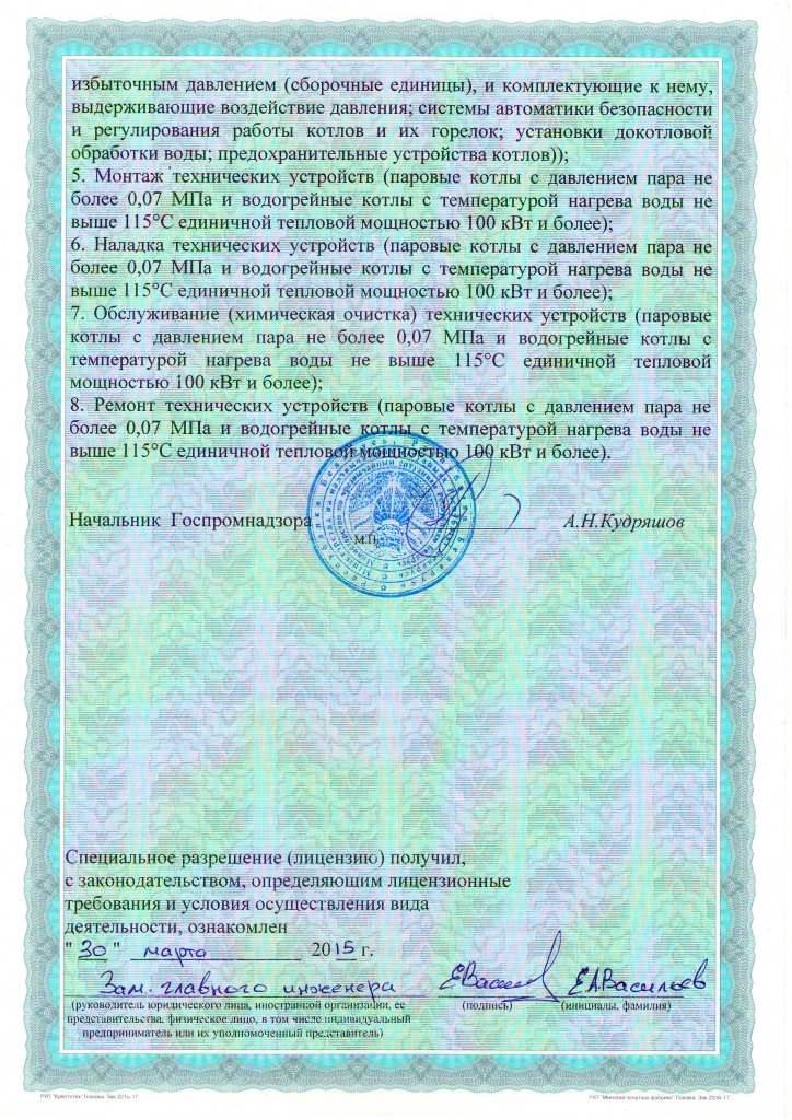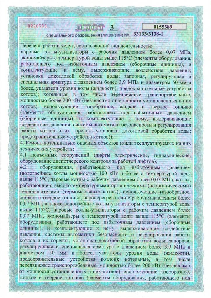 Второе направление нашей деятельности - ремонт паровых и водогрейных котлов. Большой опыт работ и высокая квалификация инженерно-технического персонала и монтажных бригад подтверждены аттестацией и другой необходимой разрешительной документацией.